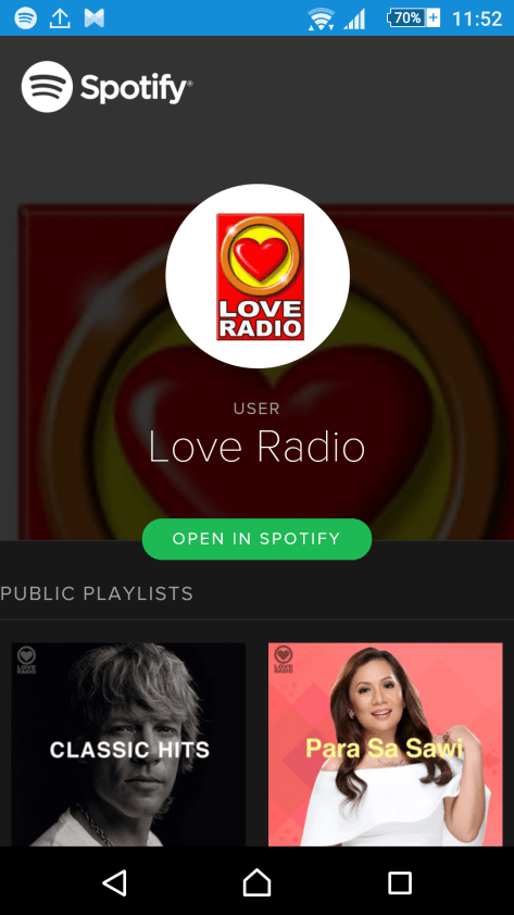 If you haven’t download the Spotify app on Android or iOS. Then search for Love Radio Manila.